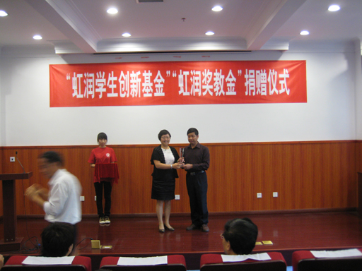2012年10月27日是上海理工大學(xué)慶祝建校106周年的日子。在這喜慶的日子里,公司董事長林善平作為上海理工大學(xué)校友應(yīng)邀參加了上海理工大學(xué)106周年校慶。林董在傾情資助家鄉(xiāng)貧困學(xué)生的同時(shí),對曾經(jīng)教育培養(yǎng)過自己的上海理工大學(xué)一往情深,決定捐款50萬元,在母校建立“虹潤學(xué)生創(chuàng)新基金”和“虹潤獎教金”,用于鼓勵(lì)上理工刻苦學(xué)習(xí)、勤于鉆研,敢于創(chuàng)新的上理工學(xué)生和忠誠黨的教育事業(yè)的上理工教師。10月26日下午,“虹潤學(xué)生創(chuàng)新基金”和“虹潤獎教金”捐贈儀式在上理工“格致堂”舉行。會上林董向校方代表遞交了50萬元支票(樣張)。林董的善舉感動了上海理工大學(xué)光電學(xué)院師生,光電學(xué)院潘淑平處長向林董頒發(fā)了捐贈證書。