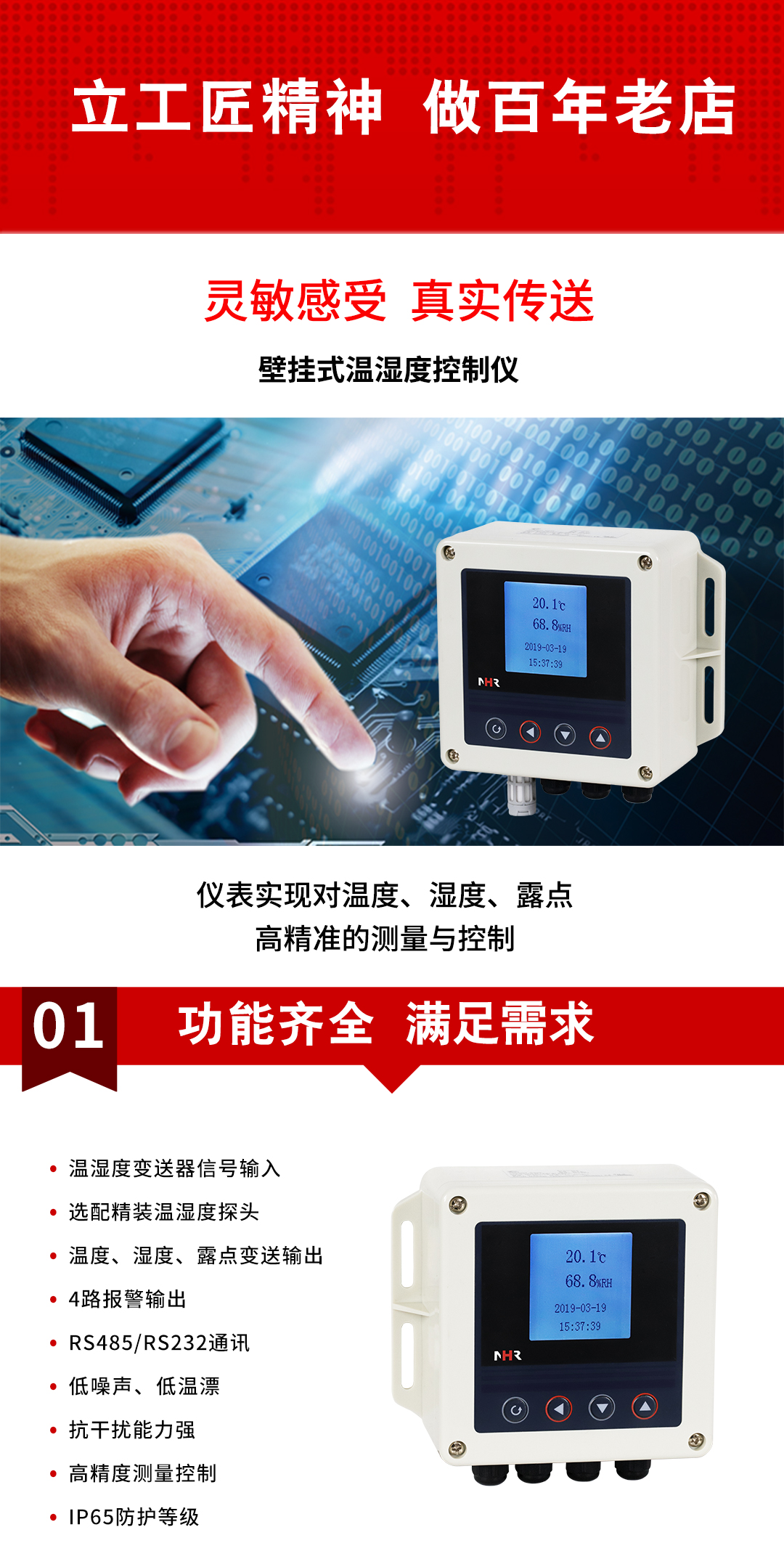 虹潤公司是專業(yè)生產(chǎn)環(huán)境監(jiān)測儀表的國家專精特新“小巨人”企業(yè)。生產(chǎn)的壁掛式溫濕度控制器,具有溫度、濕度、露點(diǎn)高精準(zhǔn)的測量,多種輸出類型,穩(wěn)定性強(qiáng),RS485/RS232通訊,IP65防護(hù)等級等特點(diǎn)。產(chǎn)品獲得一種手持式低功耗溫濕度檢測儀、大屏幕溫濕度記錄儀等2項(xiàng)國家發(fā)明專利,主持起草物聯(lián)網(wǎng)智能溫度儀表通用技術(shù)條件、冷鏈溫度記錄儀等2項(xiàng)國家標(biāo)準(zhǔn),通信系統(tǒng)多通道數(shù)據(jù)采集控制終端規(guī)范軍用標(biāo)準(zhǔn),以及現(xiàn)場設(shè)備集成等5項(xiàng)智能制造國家標(biāo)準(zhǔn),參與國際5G標(biāo)準(zhǔn)制定,取得溫濕度儀表等2項(xiàng)相關(guān)軟件著作權(quán)。產(chǎn)品廣泛應(yīng)用于工業(yè)現(xiàn)場、農(nóng)業(yè)大棚、倉儲物流、地下管廊、養(yǎng)殖孵化、配電機(jī)房等諸多領(lǐng)域。