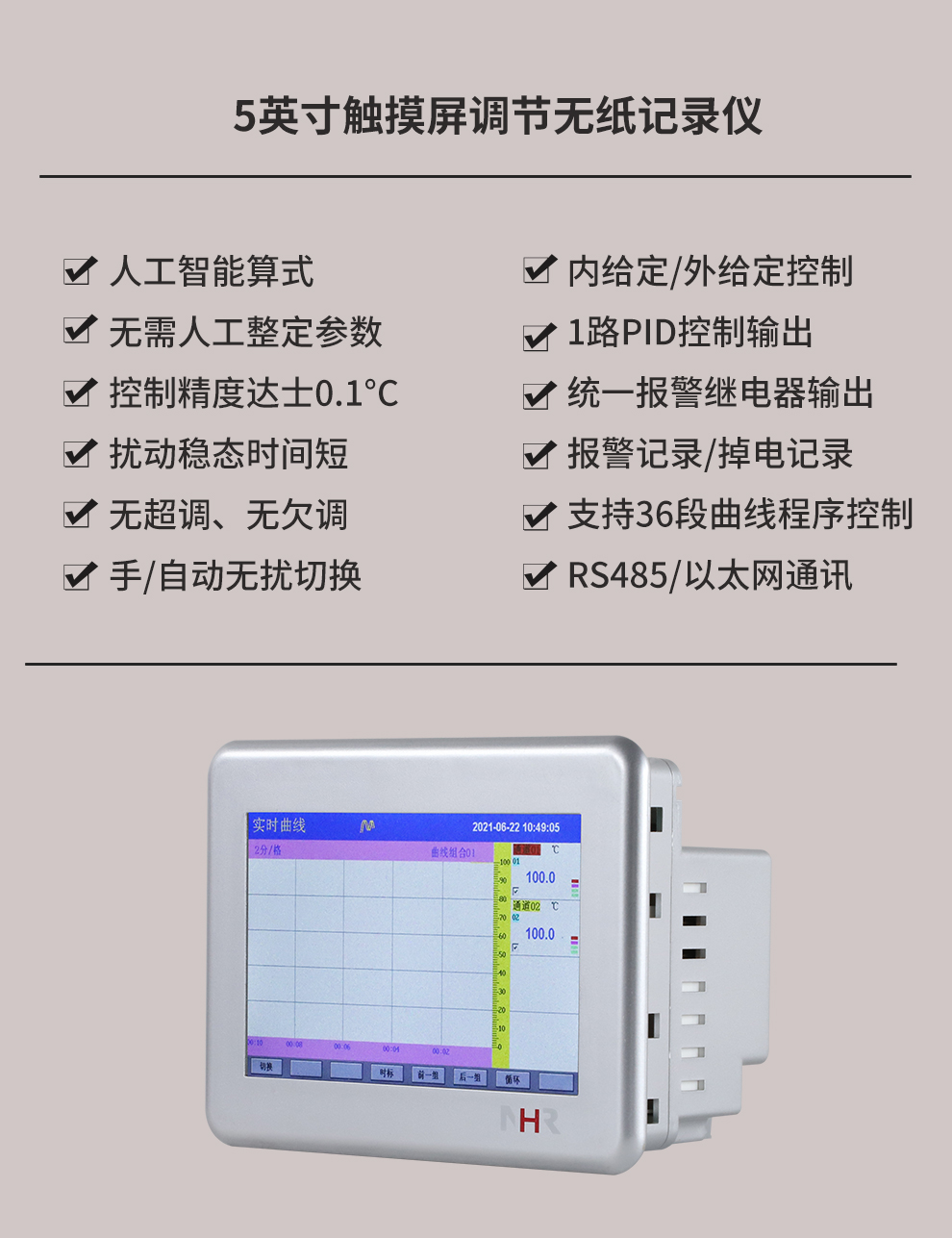 虹潤公司是專業(yè)生產(chǎn)無紙記錄儀的國家專精特新“小巨人”企業(yè)。生產(chǎn)的觸摸屏調(diào)節(jié)無紙記錄儀,具有觸摸大屏顯示,真正人工智能算式,無需人工整定參數(shù),控制精度達(dá)士0.1°C,數(shù)據(jù)記錄與轉(zhuǎn)存, RS485/以太網(wǎng)通訊,5/7/9英寸可選等特點(diǎn)。產(chǎn)品獲得智能化控制器、人工智能調(diào)節(jié)器及調(diào)節(jié)方法、模糊PID控制儀及控制方法、平板無紙記錄儀、巡回檢測顯示方法及裝置等5項(xiàng)國家發(fā)明專利,主持起草物聯(lián)網(wǎng)智能記錄儀表通用技術(shù)條件、物聯(lián)網(wǎng)智能溫度儀表通用技術(shù)條件、工業(yè)過程測量和控制系統(tǒng)用智能調(diào)節(jié)器等3項(xiàng)國家標(biāo)準(zhǔn),通信系統(tǒng)多通道數(shù)據(jù)采集控制終端規(guī)范軍用標(biāo)準(zhǔn),以及空間數(shù)據(jù)與信息數(shù)據(jù)傳輸系統(tǒng)等2項(xiàng)航天標(biāo)準(zhǔn),參與國際5G標(biāo)準(zhǔn)制定,取得觸摸屏彩色調(diào)節(jié)無紙記錄儀等3項(xiàng)相關(guān)軟件著作權(quán)。產(chǎn)品廣泛應(yīng)用于電力、石化、冶金、化工、食品、制藥、熱處理、水處理、機(jī)械配套等諸多領(lǐng)域。