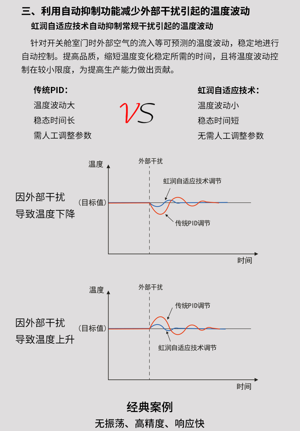 虹潤公司是專業(yè)生產溫控器的國家專精特新“小巨人”企業(yè)。生產的傻瓜式智能溫控器,具有傻瓜式操作,真正人工智能算式,無需人工整定參數(shù),控制精度可達±0.1°C,高抗干擾等特點。產品獲得模糊PID控制儀及控制方法、人工智能調節(jié)器、智能化控制器、移相觸發(fā)控制器、閥門自動手動無擾動操作控制方法及裝置等5項國家發(fā)明專利,主持起草工業(yè)過程控制系統(tǒng)用模擬輸入兩位或多位輸出儀表、物聯(lián)網智能溫度儀表通用技術條件、工業(yè)過程測量和控制系統(tǒng)用智能調節(jié)器等3項國家標準,以及通信系統(tǒng)多通道數(shù)據采集控制終端規(guī)范軍用標準,參與國際5G標準制定,取得傻瓜式模糊PID調節(jié)儀等3項相關軟件著作權。產品廣泛應用于電力、石化,冶金、制藥、食品等幾乎所有工業(yè)現(xiàn)場,實現(xiàn)精準控溫,保障生產安全與質量。