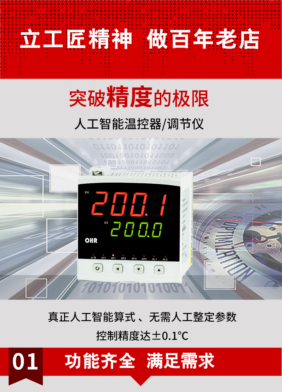 虹潤公司是專業(yè)生產(chǎn)溫控器的國家專精特新“小巨人”企業(yè)。生產(chǎn)的人工智能溫控器,具有真正人工智能算式,無需人工整定參數(shù),控制精度可達±0.1°C,多種輸出類型,高抗干擾等特點。產(chǎn)品獲得模糊PID控制儀及控制方法、人工智能調(diào)節(jié)器、智能化控制器、移相觸發(fā)控制器、閥門自動手動無擾動操作控制方法及裝置等5項國家發(fā)明專利,主持起草工業(yè)過程控制系統(tǒng)用模擬輸入兩位或多位輸出儀表、物聯(lián)網(wǎng)智能溫度儀表通用技術(shù)條件、工業(yè)過程測量和控制系統(tǒng)用智能調(diào)節(jié)器等3項國家標(biāo)準(zhǔn),以及通信系統(tǒng)多通道數(shù)據(jù)采集控制終端規(guī)范軍用標(biāo)準(zhǔn),參與國際5G標(biāo)準(zhǔn)制定,取得模糊PID溫控儀等3項相關(guān)軟件著作權(quán)。產(chǎn)品廣泛應(yīng)用于電力、石化,冶金、制藥、食品等幾乎所有工業(yè)現(xiàn)場,實現(xiàn)精準(zhǔn)控溫,保障生產(chǎn)安全與質(zhì)量。