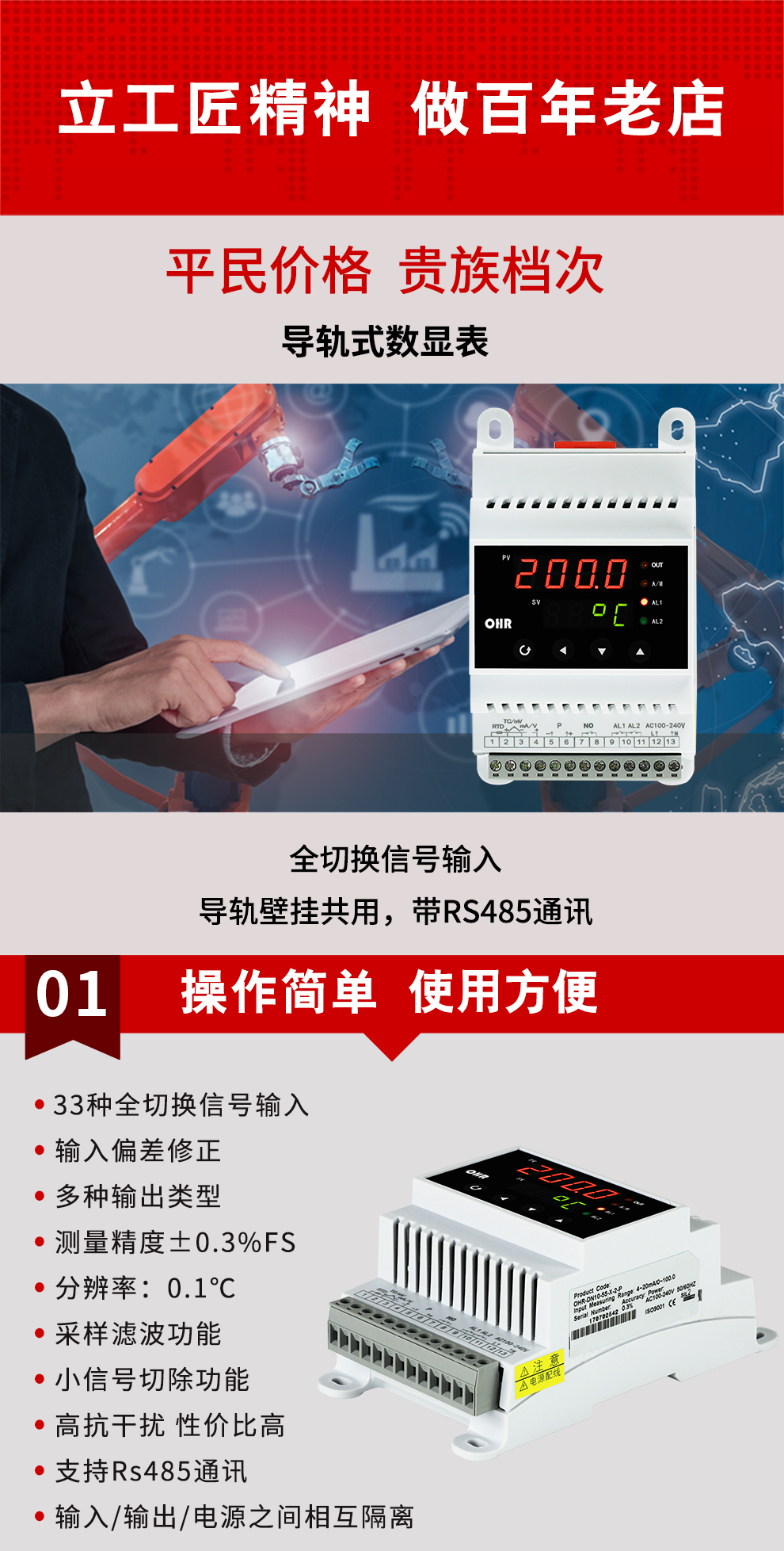 虹潤公司是專業(yè)生產(chǎn)數(shù)顯表的國家專精特新“小巨人”企業(yè),生產(chǎn)的導(dǎo)軌式數(shù)顯儀表,具有全切換信號(hào)輸入,導(dǎo)軌壁掛共用,全隔離設(shè)計(jì),高抗干擾,變送輸出或RS485通訊等特點(diǎn)。產(chǎn)品獲得巡回檢測(cè)顯示方法及裝置、工業(yè)模塊的導(dǎo)軌式安裝結(jié)構(gòu)等2項(xiàng)國家發(fā)明專利,主持起草工業(yè)過程控制系統(tǒng)用模擬輸入兩位或多位輸出儀表、物聯(lián)網(wǎng)智能溫度儀表通用技術(shù)條件等2項(xiàng)國家標(biāo)準(zhǔn),,以及通信系統(tǒng)多通道數(shù)據(jù)采集控制終端規(guī)范軍用標(biāo)準(zhǔn),參與國際5G標(biāo)準(zhǔn)制定,取得簡(jiǎn)易數(shù)顯儀表等3項(xiàng)相關(guān)軟件著作權(quán)。產(chǎn)品廣泛應(yīng)用于電力、石化、冶金、化工、造紙、食品、輕工、制藥、熱處理、水處理、機(jī)械配套等各種工業(yè)現(xiàn)場(chǎng)。