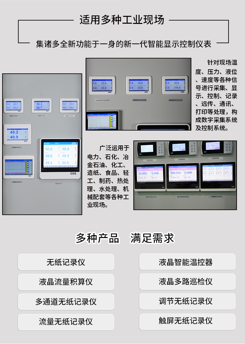 虹潤公司是專業(yè)生產無紙記錄儀的國家專精特新“小巨人”企業(yè)。生產的觸摸屏調節(jié)無紙記錄儀,具有觸摸大屏顯示,真正人工智能算式,無需人工整定參數(shù),控制精度達士0.1°C,數(shù)據(jù)記錄與轉存, RS485/以太網通訊,5/7/9英寸可選等特點。產品獲得智能化控制器、人工智能調節(jié)器及調節(jié)方法、模糊PID控制儀及控制方法、平板無紙記錄儀、巡回檢測顯示方法及裝置等5項國家發(fā)明專利,主持起草物聯(lián)網智能記錄儀表通用技術條件、物聯(lián)網智能溫度儀表通用技術條件、工業(yè)過程測量和控制系統(tǒng)用智能調節(jié)器等3項國家標準,通信系統(tǒng)多通道數(shù)據(jù)采集控制終端規(guī)范軍用標準,以及空間數(shù)據(jù)與信息數(shù)據(jù)傳輸系統(tǒng)等2項航天標準,參與國際5G標準制定,取得觸摸屏彩色調節(jié)無紙記錄儀等3項相關軟件著作權。產品廣泛應用于電力、石化、冶金、化工、食品、制藥、熱處理、水處理、機械配套等諸多領域。