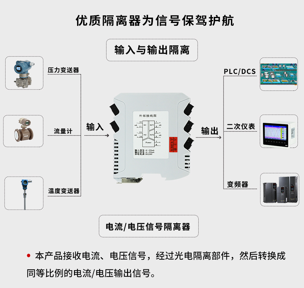 虹潤(rùn)公司是專業(yè)生產(chǎn)隔離器的國(guó)家專精特新“小巨人”企業(yè)。生產(chǎn)的智能信號(hào)隔離器涵蓋電流電壓變送器、溫度變送器、配電器、頻率轉(zhuǎn)換器、開關(guān)量轉(zhuǎn)換器及通訊轉(zhuǎn)換器等多種產(chǎn)品類型。產(chǎn)品獲得信號(hào)隔離器、一種二端子模塊、無(wú)源信號(hào)隔離器等3項(xiàng)國(guó)家發(fā)明專利,主持起草現(xiàn)場(chǎng)設(shè)備工具(FDT)接口規(guī)范、工業(yè)過(guò)程測(cè)量和控制系統(tǒng)用隔離式安全柵、工業(yè)過(guò)程測(cè)量和控制系統(tǒng)用配電器等3項(xiàng)國(guó)家標(biāo)準(zhǔn),以及通信系統(tǒng)多通道數(shù)據(jù)采集控制終端規(guī)范軍用標(biāo)準(zhǔn),參與國(guó)際5G標(biāo)準(zhǔn)制定,取得導(dǎo)軌式智能隔離器、頻率轉(zhuǎn)換器等3項(xiàng)相關(guān)軟件著作權(quán)。產(chǎn)品廣泛電力、冶金、工業(yè)電爐、變電站、高壓電機(jī)房等需要電隔離的工業(yè)自動(dòng)化控制系統(tǒng)。