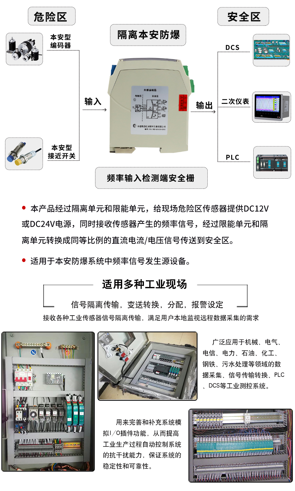 虹潤公司是專業(yè)生產隔離器的國家專精特新“小巨人”企業(yè)。生產的隔離式安全柵涵蓋信號頻率輸入、電壓輸入、電流輸入、熱電阻輸入、熱電偶輸入、開關量輸入等多種產品類型。產品獲得具備減震抗干擾能力的溫度變送器、信號隔離器、一種二端子模塊、無源信號隔離器等4項國家發(fā)明專利,主持起草物聯(lián)網智能溫度儀表、現(xiàn)場設備工具(FDT)接口規(guī)范、工業(yè)過程測量和控制系統(tǒng)用溫度變送器等3項國家標準,以及通信系統(tǒng)多通道數(shù)據(jù)采集控制終端規(guī)范軍用標準。參與國際5G標準制定,取得智能隔離式安全柵等4項相關軟件著作權。產品廣泛應用于石油、電力、化工,冶金、智能制造、污水處理等諸多行業(yè)。