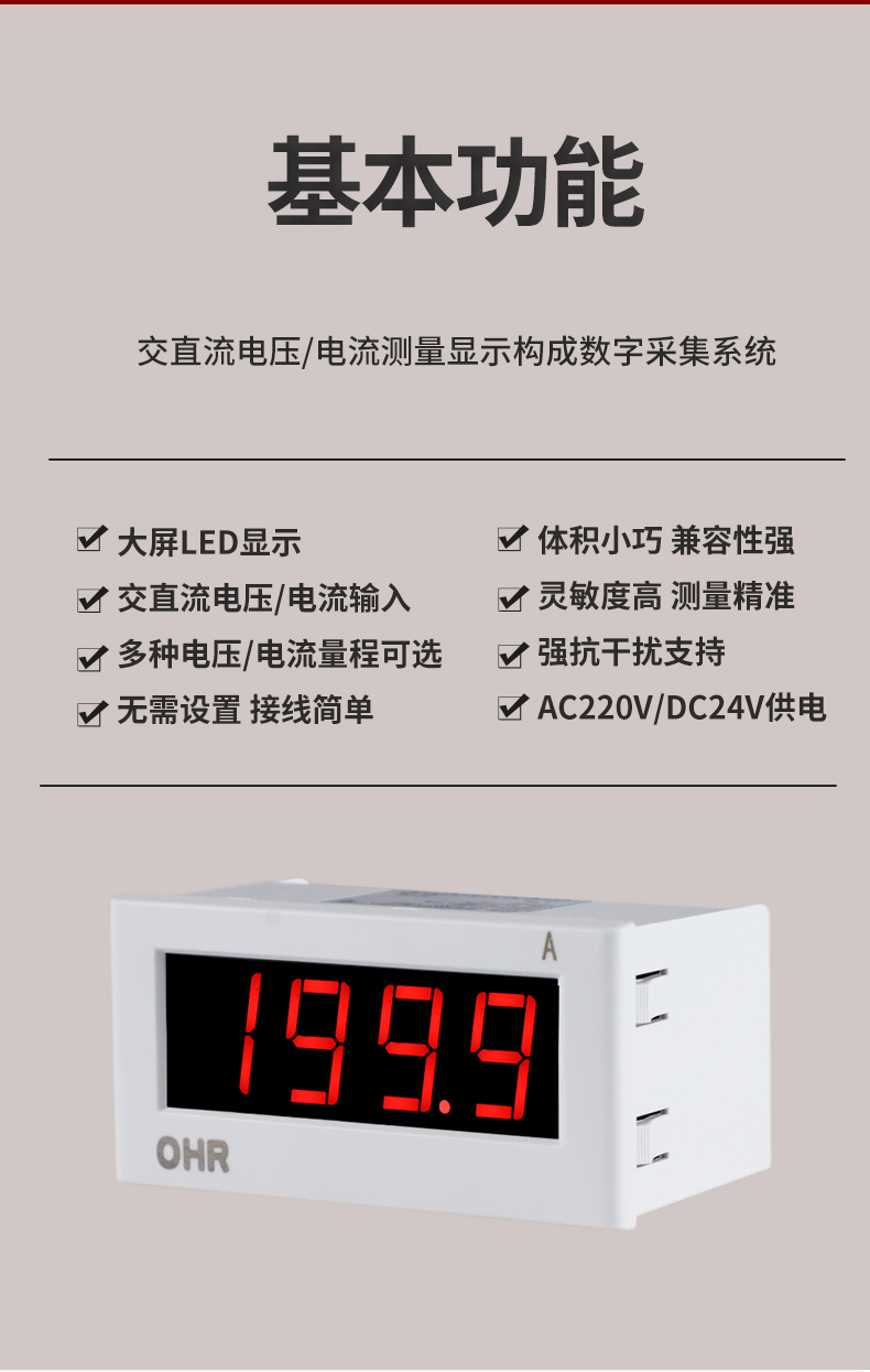 虹潤(rùn)公司是專業(yè)生產(chǎn)數(shù)字電壓表的國(guó)家專精特新“小巨人”企業(yè)。生產(chǎn)的電壓/電流表,具有大屏LED顯示,交直流電壓/電流輸入,免設(shè)置易接線,性價(jià)比高等特點(diǎn)。產(chǎn)品獲得一種交流信號(hào)變送器、交直流信號(hào)轉(zhuǎn)換電路、基于DCS技術(shù)的盤裝式三相電量表等3項(xiàng)國(guó)家發(fā)明專利,主持起草現(xiàn)場(chǎng)設(shè)備集成等5項(xiàng)智能制造國(guó)家標(biāo)準(zhǔn),物聯(lián)網(wǎng)電流變送器規(guī)范、物聯(lián)網(wǎng)總體技術(shù)智能傳感器特性與分類等2項(xiàng)國(guó)家標(biāo)準(zhǔn),以及直流漏電流傳感器規(guī)范、通信系統(tǒng)多通道數(shù)據(jù)采集控制終端規(guī)范等2項(xiàng)軍用標(biāo)準(zhǔn),參與國(guó)際5G標(biāo)準(zhǔn)制定。產(chǎn)品廣泛應(yīng)用于電力系統(tǒng)、工業(yè)制造、自動(dòng)化設(shè)備、計(jì)量檢測(cè)等各種工業(yè)領(lǐng)域。