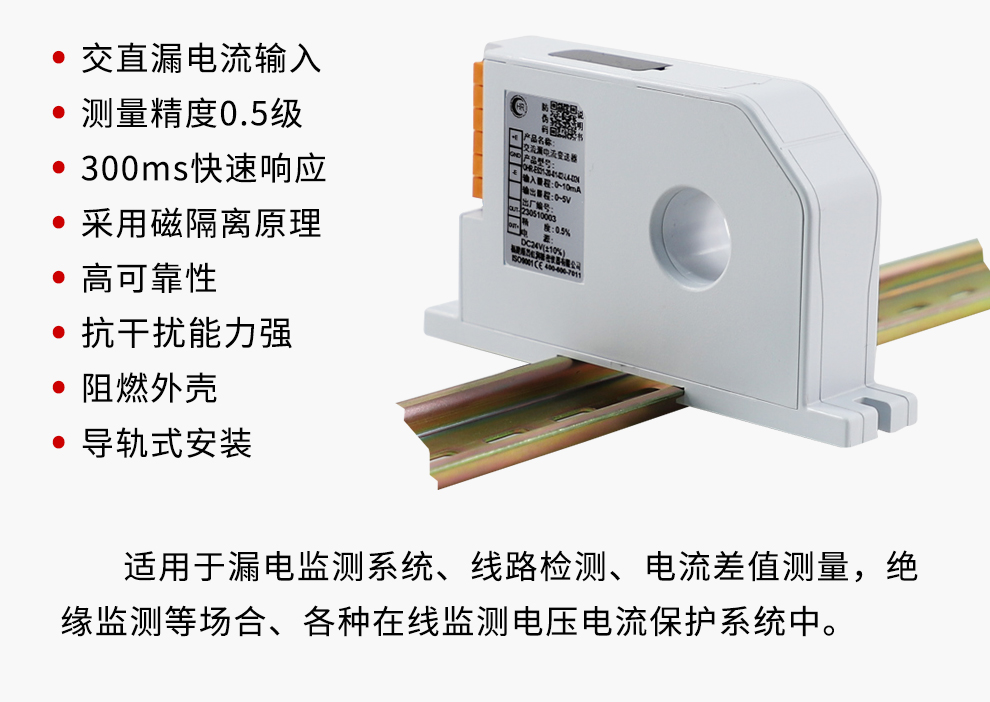 虹潤公司是專業(yè)生產(chǎn)電流傳感器的國家專精特新“小巨人”企業(yè)。生產(chǎn)的交流/直流漏電流變送器,具有交直漏電電流輸入、高精準(zhǔn)測量、響應(yīng)速度快、高抗干擾、全隔離設(shè)計等特點(diǎn)。產(chǎn)品獲得一種交流信號變送器、交直流信號轉(zhuǎn)換電路、基于DCS技術(shù)的盤裝式三相電量表等3項國家發(fā)明專利,主持起草工業(yè)過程控制系統(tǒng)用模擬輸入兩位或多位輸出儀表國家標(biāo)準(zhǔn),直流漏電流傳感器規(guī)范、通信系統(tǒng)多通道數(shù)據(jù)采集控制終端規(guī)范等2項軍用標(biāo)準(zhǔn),以及現(xiàn)場設(shè)備集成等5項智能制造國家標(biāo)準(zhǔn),參與國際5G標(biāo)準(zhǔn)制定。產(chǎn)品廣泛應(yīng)用于工業(yè)自動化、電力、新能源、科研實(shí)驗基礎(chǔ)設(shè)施等需要電力參數(shù)監(jiān)測的領(lǐng)域。