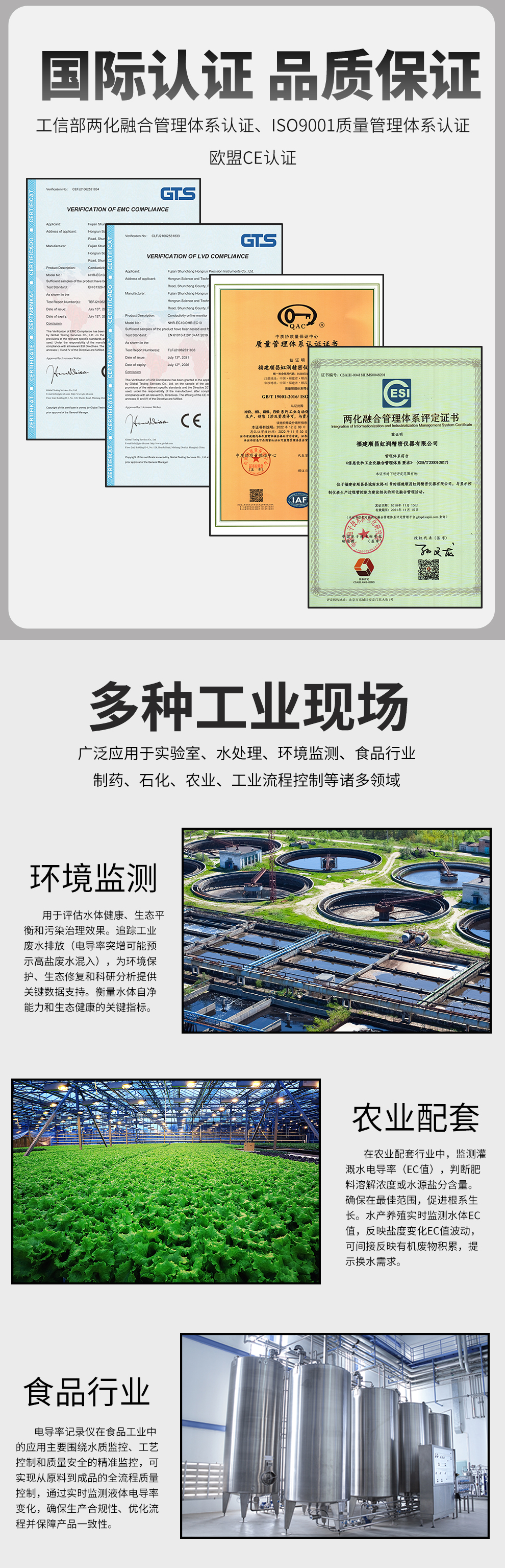 虹潤公司是專業(yè)生產(chǎn)水質(zhì)分析儀的國家專精特新“小巨人”企業(yè)。生產(chǎn)的電導率記錄儀,具有模擬電極與數(shù)字電極切換輸入、測量精準穩(wěn)定不跳字,數(shù)據(jù)記錄與轉(zhuǎn)存、RS485/以太網(wǎng)通訊,配套上位機管理軟件等特點。產(chǎn)品獲得一種平板無紙記錄儀、智能化控制器等2項國家發(fā)明專利;主持起草物聯(lián)網(wǎng)智能記錄儀表通用技術(shù)條件、現(xiàn)場設(shè)備工具(FDT)接口規(guī)范.、過程分析技術(shù)系統(tǒng)等3項國家標準,以及通信系統(tǒng)多通道數(shù)據(jù)采集控制終端規(guī)范軍用標準,參與國際5G標準制定,取得電導率無紙記錄儀表等4項相關(guān)軟件著作權(quán)。產(chǎn)品廣泛應用于環(huán)保水務、市政供水、水產(chǎn)養(yǎng)殖、農(nóng)業(yè)灌溉、科研實驗等諸多領(lǐng)域。