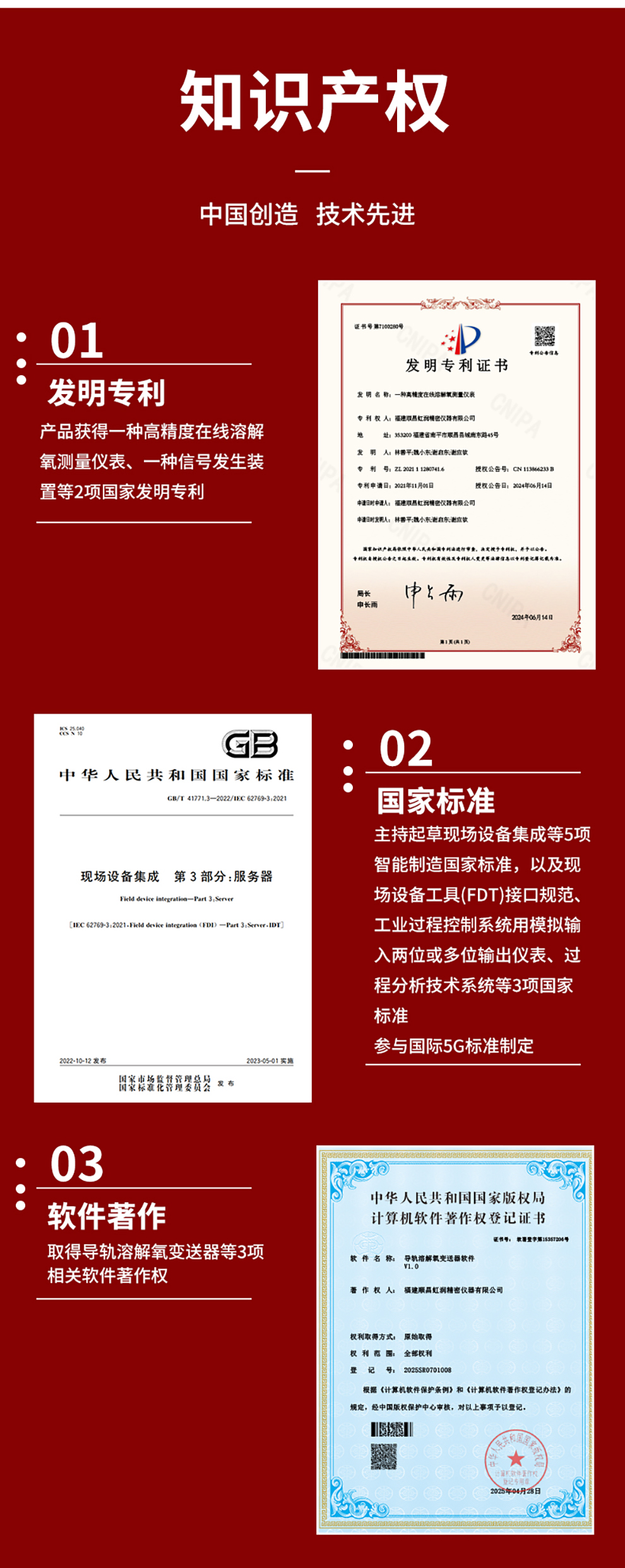 虹潤公司是專業(yè)生產(chǎn)水質(zhì)分析儀的國家專精特新“小巨人”企業(yè)。生產(chǎn)的導軌式溶解氧變送器,具有測量穩(wěn)定不跳字,液晶顯示按鍵操控,變送輸出精準,寬范圍電源供電,RS485或HART通訊等特點。產(chǎn)品獲得一種高精度在線溶解氧測量儀表、智能化控制器、一種信號發(fā)生裝置等3項國家發(fā)明專利;主持起草現(xiàn)場設備集成等5項智能制造國家標準,以及現(xiàn)場設備工具(FDT)接口規(guī)范、工業(yè)過程控制系統(tǒng)用模擬輸入兩位或多位輸出儀表、過程分析技術系統(tǒng)等3項國家標準;參與國際5G標準制定,取得導軌溶解氧變送器等3項相關軟件著作權。產(chǎn)品廣泛應用于實驗室、水處理、環(huán)境監(jiān)測、制藥、食品、農(nóng)業(yè)、工業(yè)流程控制等諸多領域。