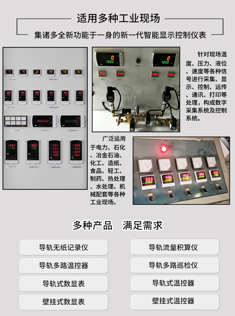 虹潤公司是專業(yè)生產(chǎn)多路溫度巡檢儀的國家專精特新“小巨人”企業(yè)。生產(chǎn)的導軌多路巡檢儀,具有八回路巡檢采集,全切換信號輸入,高抗電磁干擾,全隔離設(shè)計,分別報警/分別變送輸出等特點。產(chǎn)品獲得巡回檢測顯示方法及裝置以及工業(yè)模塊的導軌式安裝結(jié)構(gòu)等2項國家發(fā)明專利,主持起草工業(yè)過程控制系統(tǒng)用模擬輸入兩位或多位輸出儀表、物聯(lián)網(wǎng)智能溫度儀表通用技術(shù)條件等2項國家標準,以及通信系統(tǒng)多通道數(shù)據(jù)采集控制終端規(guī)范軍用標準,參與國際5G標準制定,取得巡回檢測控制儀等3項相關(guān)軟件著作權(quán)。產(chǎn)品廣泛應(yīng)用于石化、冶金、電力、食品、制藥、水處理、實驗室等諸多領(lǐng)域。