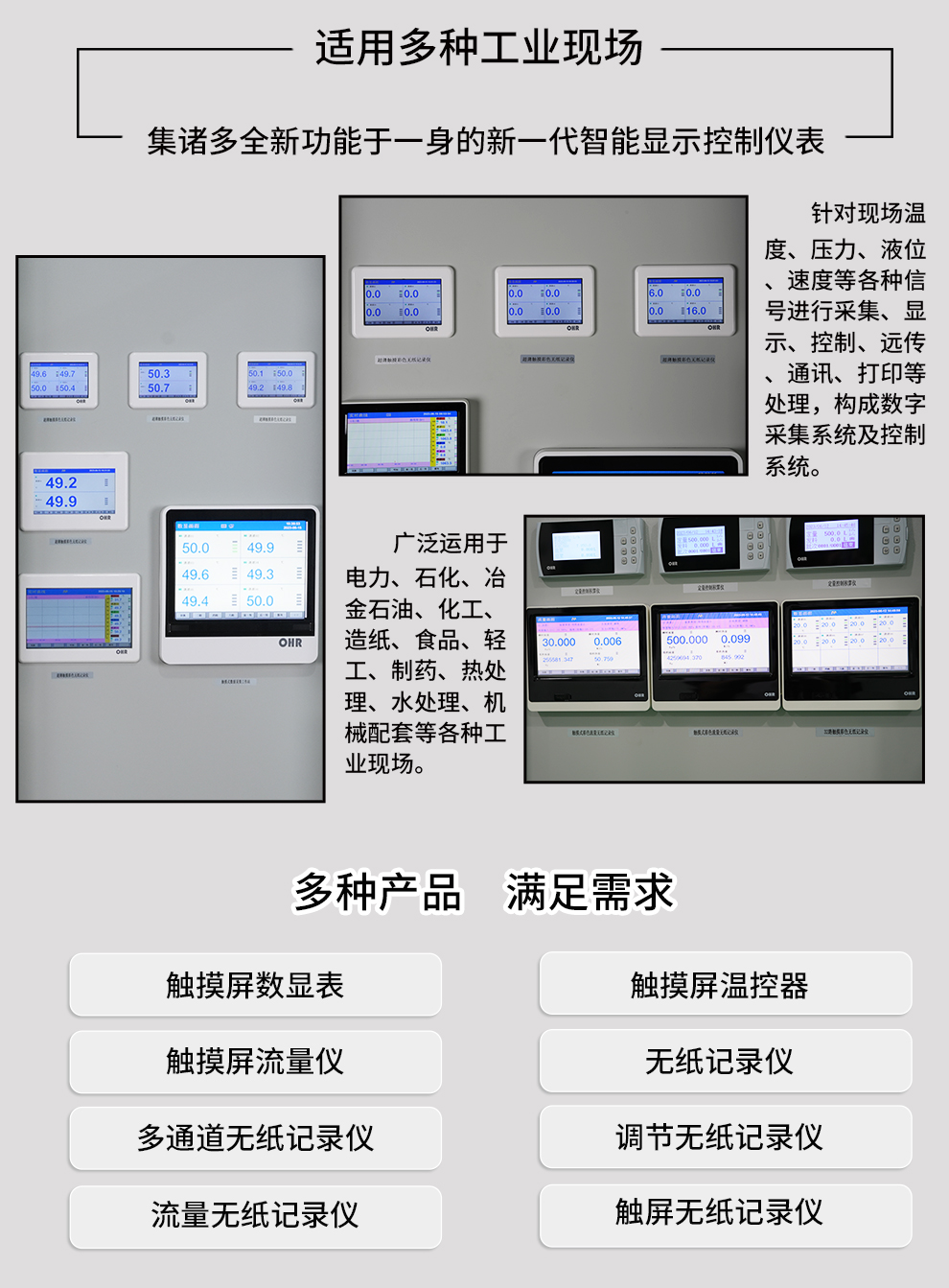 虹潤公司是專業(yè)生產(chǎn)無紙記錄儀的國家專精特新“小巨人”企業(yè)。生產(chǎn)的觸摸屏溫控器,具有觸摸大屏顯示,真正人工智能算式,無需人工整定參數(shù),控制精度達(dá)士0.1°C, RS485/以太網(wǎng)通訊,5/7/9英寸可選等特點。產(chǎn)品獲得智能化控制器、人工智能調(diào)節(jié)器及調(diào)節(jié)方法、模糊PID控制儀及控制方法、平板無紙記錄儀、巡回檢測顯示方法及裝置等5項國家發(fā)明專利,主持起草物聯(lián)網(wǎng)智能記錄儀表通用技術(shù)條件、物聯(lián)網(wǎng)智能溫度儀表通用技術(shù)條件、工業(yè)過程測量和控制系統(tǒng)用智能調(diào)節(jié)器等3項國家標(biāo)準(zhǔn),通信系統(tǒng)多通道數(shù)據(jù)采集控制終端規(guī)范軍用標(biāo)準(zhǔn),以及空間數(shù)據(jù)與信息數(shù)據(jù)傳輸系統(tǒng)等2項航天標(biāo)準(zhǔn),參與國際5G標(biāo)準(zhǔn)制定,取得觸摸屏彩色調(diào)節(jié)無紙記錄儀等3項相關(guān)軟件著作權(quán)。產(chǎn)品廣泛應(yīng)用于電力、石化、冶金、化工、食品、制藥、熱處理、水處理、機(jī)械配套等諸多領(lǐng)域。