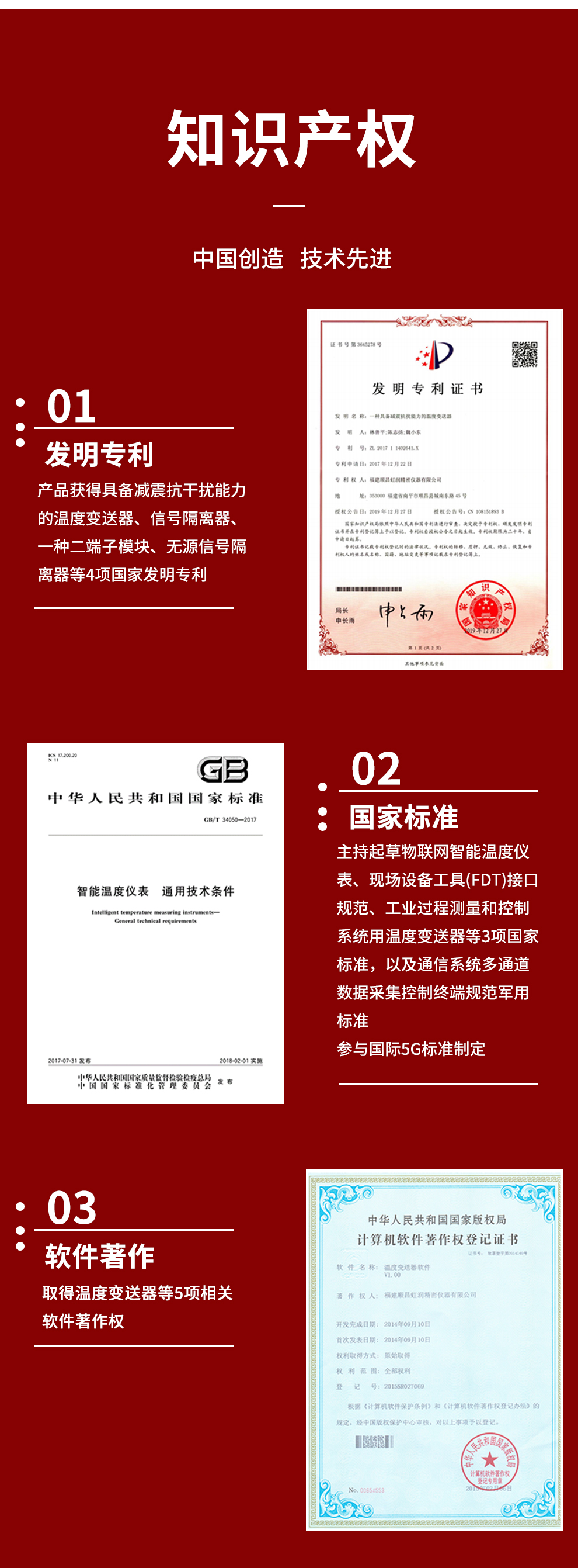 虹潤公司是專業(yè)生產(chǎn)溫度變送器的國家專精特新“小巨人”企業(yè)。生產(chǎn)的溫度變送器,具有采用磁隔離技術(shù),配套編程器可修改參數(shù),抗干擾能力強,穩(wěn)定性好,帶RS485或HART通訊等特點。該產(chǎn)品不僅通過HART基金會認證、德國萊茵 CE 認證與 SIL 功能安全認證,還獲得具備減震抗干擾能力的溫度變送器、信號隔離器、一種二端子模塊、無源信號隔離器等4項國家發(fā)明專利,主持起草物聯(lián)網(wǎng)智能溫度儀表、現(xiàn)場設(shè)備工具(FDT)接口規(guī)范、工業(yè)過程測量和控制系統(tǒng)用溫度變送器等3項國家標準,以及通信系統(tǒng)多通道數(shù)據(jù)采集控制終端規(guī)范軍用標準,參與國際5G標準制定,取得溫度變送器等5項相關(guān)軟件著作權(quán)。產(chǎn)品廣泛應(yīng)用于石油、電力、化工,冶金、制藥、紡織、橡膠制造等工業(yè)領(lǐng)域現(xiàn)場自動化測溫過程。