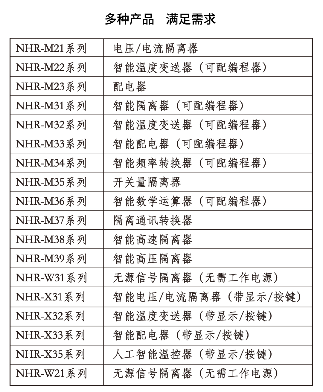 虹潤公司是專業(yè)生產(chǎn)隔離器的國家專精特新“小巨人”企業(yè)。生產(chǎn)的智能信號隔離器涵蓋電流電壓變送器、溫度變送器、配電器、頻率轉(zhuǎn)換器、開關(guān)量轉(zhuǎn)換器及通訊轉(zhuǎn)換器等多種產(chǎn)品類型。產(chǎn)品獲得信號隔離器、一種二端子模塊、無源信號隔離器等3項國家發(fā)明專利,主持起草現(xiàn)場設(shè)備工具(FDT)接口規(guī)范、工業(yè)過程測量和控制系統(tǒng)用隔離式安全柵、工業(yè)過程測量和控制系統(tǒng)用配電器等3項國家標(biāo)準(zhǔn),以及通信系統(tǒng)多通道數(shù)據(jù)采集控制終端規(guī)范軍用標(biāo)準(zhǔn),參與國際5G標(biāo)準(zhǔn)制定,取得導(dǎo)軌式智能隔離器、頻率轉(zhuǎn)換器等3項相關(guān)軟件著作權(quán)。產(chǎn)品廣泛電力、冶金、工業(yè)電爐、變電站、高壓電機房等需要電隔離的工業(yè)自動化控制系統(tǒng)。