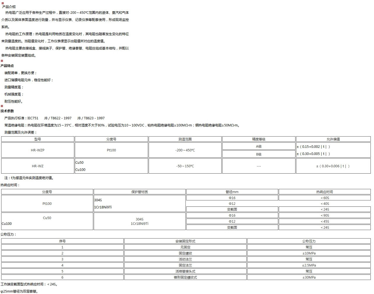 熱電阻(thermal resistor)是中低溫區(qū)最常用的一種溫度檢測器。熱電阻測溫是基于金屬導(dǎo)體的電阻值隨溫度的增加而增加這一特性來進行溫度測量的。它的主要特點是測量精度高,性能穩(wěn)定。其中鉑熱電阻的測量精確度是最高的,它不僅廣泛應(yīng)用于工業(yè)測溫,而且被制成標(biāo)準(zhǔn)的基準(zhǔn)儀。