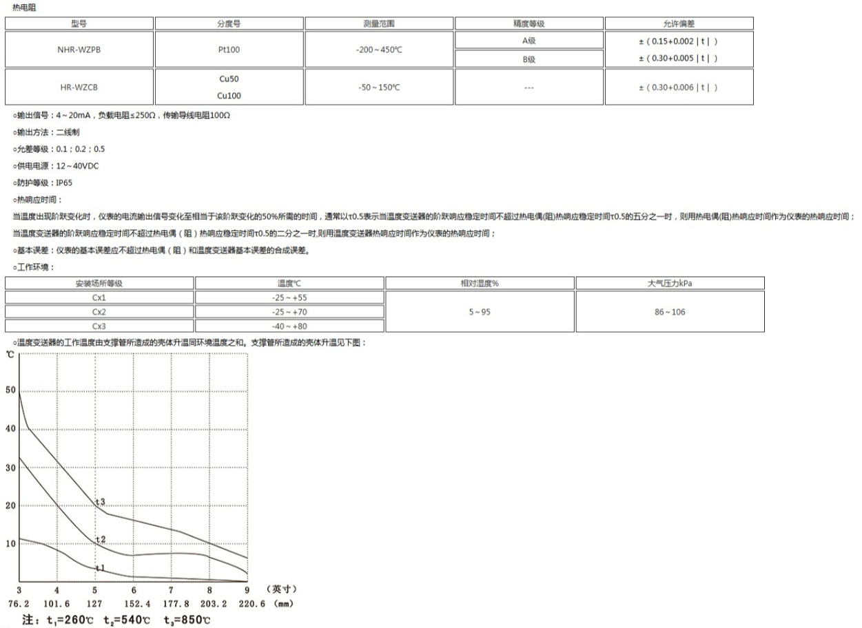 帶溫度變送器熱電偶(阻),由基準源、冷端補償、放大單元、線性化處理、V/I轉換、斷偶處理、反接保護、限流保護等電路單元組成。它是將熱電偶(阻)產生的熱電勢經冷端補償放大后,再帽由線性電路消除熱電勢與溫度的非線性誤差,最后放大轉換為4~20mA電流輸出信號。