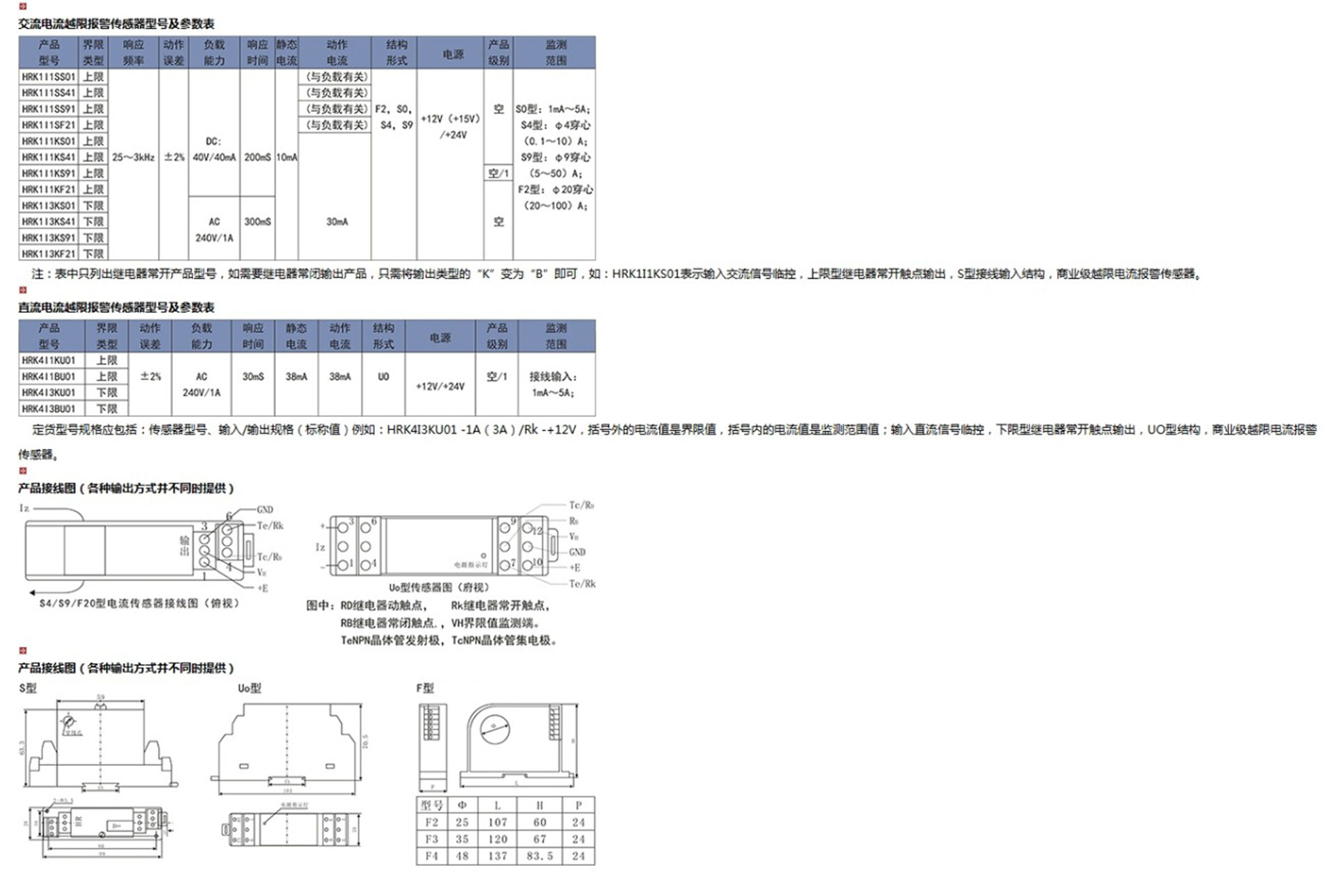 電流越限報警傳感器以HR系列電量隔離傳感器為基礎(chǔ),增配比較器電路、基準電壓設(shè)定電路、輸出驅(qū)動電路組成,用來隔離監(jiān)測主回路中的交流或直流電流,當被監(jiān)測的電量超過預先設(shè)定的上限值,或低于預先設(shè)定的下限值時,給出開關(guān)量控制信號。